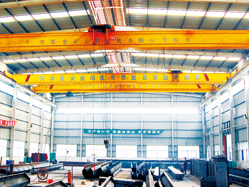 本產品由箱形主梁、端梁、小車及運行機構組成,電動葫蘆安裝在角型小車上作為起升機構,角型小車采用偏掛形式布置在主梁一側運行,小車設有上、下水平輪,與垂直行走輪呈三點布置。電動葫蘆位置由傳統的主梁下提升到主梁上側,有效提高了起升高度。 小車運行為錐型電機制動,開式齒輪傳動。 主梁為箱型結構,偏軌,上、下設水平輪,安全可靠,并可防止啃軌。 大車運行采用分別驅動形式,錐型電機制動,開式齒輪傳動。運行電機可根據用戶要求選用軟啟動電機和變頻調速,起重機啟動平穩,運行安全可靠。 操作方式設有地面手柄或無線遙控器。